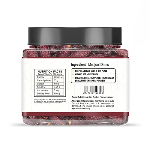 HILLS ORGANICS Medjoul Dates (Khajur) 100G | 100% Fresh & Natural Khajoor | Kimiya Dates Dry Fruits | All Natural | No Preservatives | No Added Sugar | Gluten Free | Vegan - Jar Pack