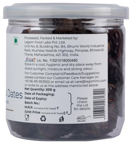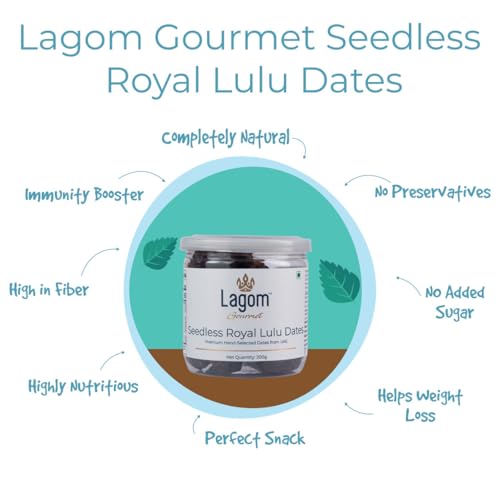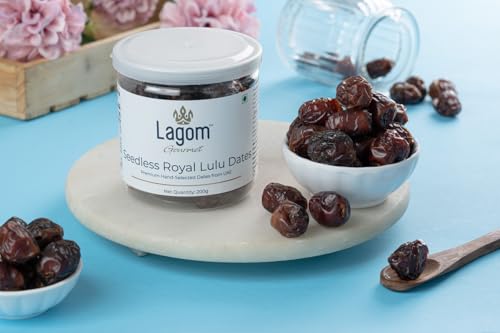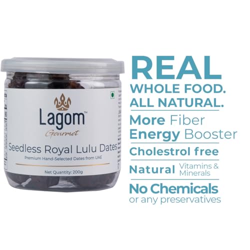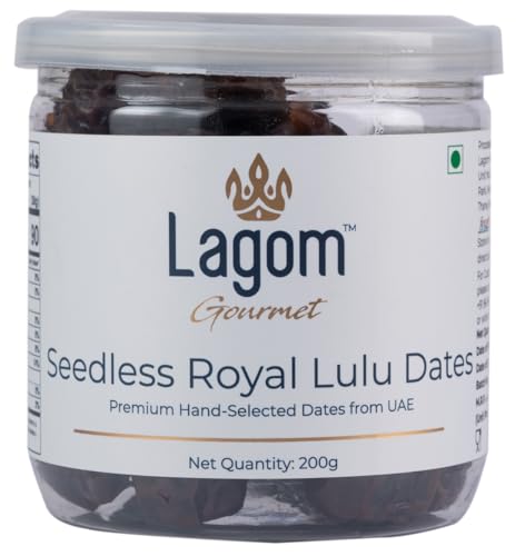 Lagom Gourmet Seedless Royal Lulu Dates | All Natural | No Preservatives | No Added Sugar | Gluten Free | Vegan | Plant Based | Non GMO | Dates Dry Fruits | Khajur | Khajoor | Khejur (200 g)