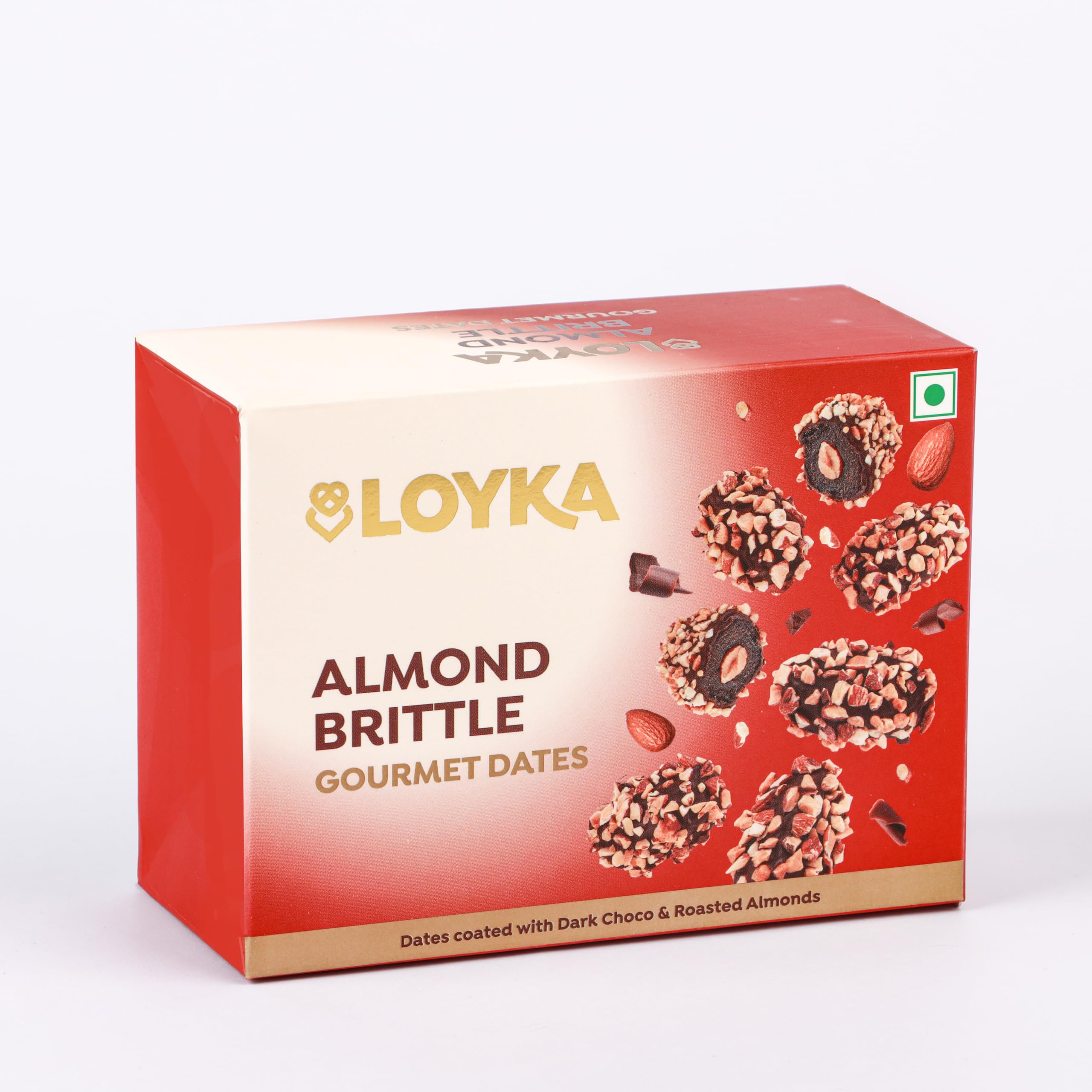 Introducing our delicious Almond Brittle Dates made with high-quality ingredients to create a perfectly balanced and irresistible treat. Each bite of our Almond Brittle Dates delivers a satisfying crunch of roasted California almonds complemented by the natural sweetness of dates and decandance of dark choco. Our Almond Brittle Dates are not only a great-tasting indulgence but also a better for you snack that can be enjoyed guilt-free. Dates are packed with essential vitamins and minerals including potassium magnesium and iron and are a natural source of energy. Almonds are loaded with protein healthy fats and fiber making them a perfect snack to help you stay full and satisfied. Our Caramel Almond Dates come in a 11-piece box making them perfect for sharing with friends and family or as a convenient on-the-go snack. Whether you are looking for a quick pick-me-up snack a post-workout refuel or a special treat for yourself our Almond Brittle Dates are sure to hit the spot. Try them today and discover why our Almond Brittle Dates are quickly becoming a customer favorite!