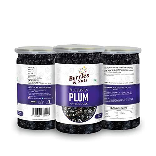 Berries And Nuts Dried Blueberry Plum | Dehydrated Plum Dried Fruit Plums | 250 Grams | 1 Bottle of 250 Grams