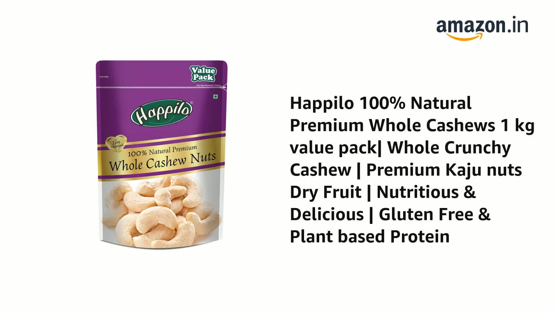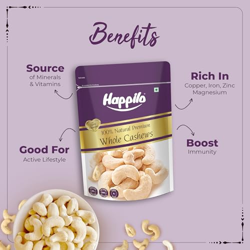 Happilo 100% Natural Premium Californian King Size Cashew 100% Real nuts- good for an active life style It's High in Protein Dietary Fiber Gluten Free Non-GMO Zero Trans Fat & Zero Cholesterol. A pack of nut that prepares you for a power packed day ahead. Happilo Zip Lock Pouch with airtight seal to ensure the product is protected and fresh. Quality assured - Happilo products are rigorously tested against the industry's best quality standards