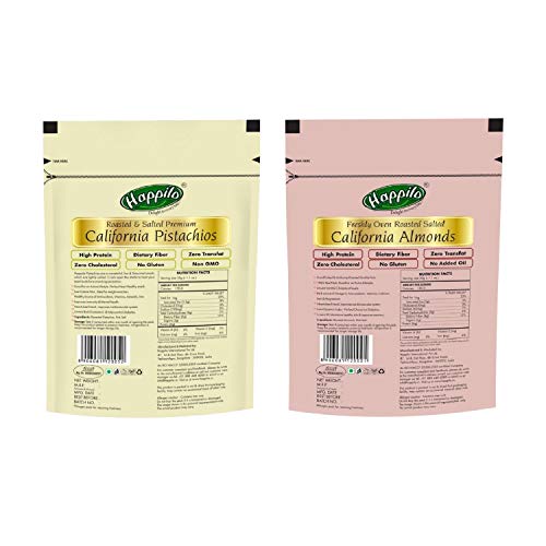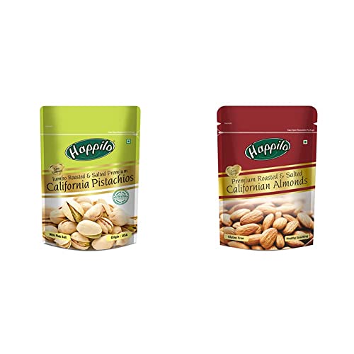 Happilo Premium Californian Roasted and Salted Pistachios 200g (Pack of 1) and Happilo Premium Californian Roasted and Salted Almonds 200g
