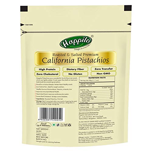 Happilo pistachios are lightly salted crack open the shells to treat your taste buds for a snacking sensation. Happily almonds are handpicked and natural quality Happilo brand is committed in improving the quality of your life Happilo provides food that is packed with the goodness of nature and taste that will keep you wanting for more.