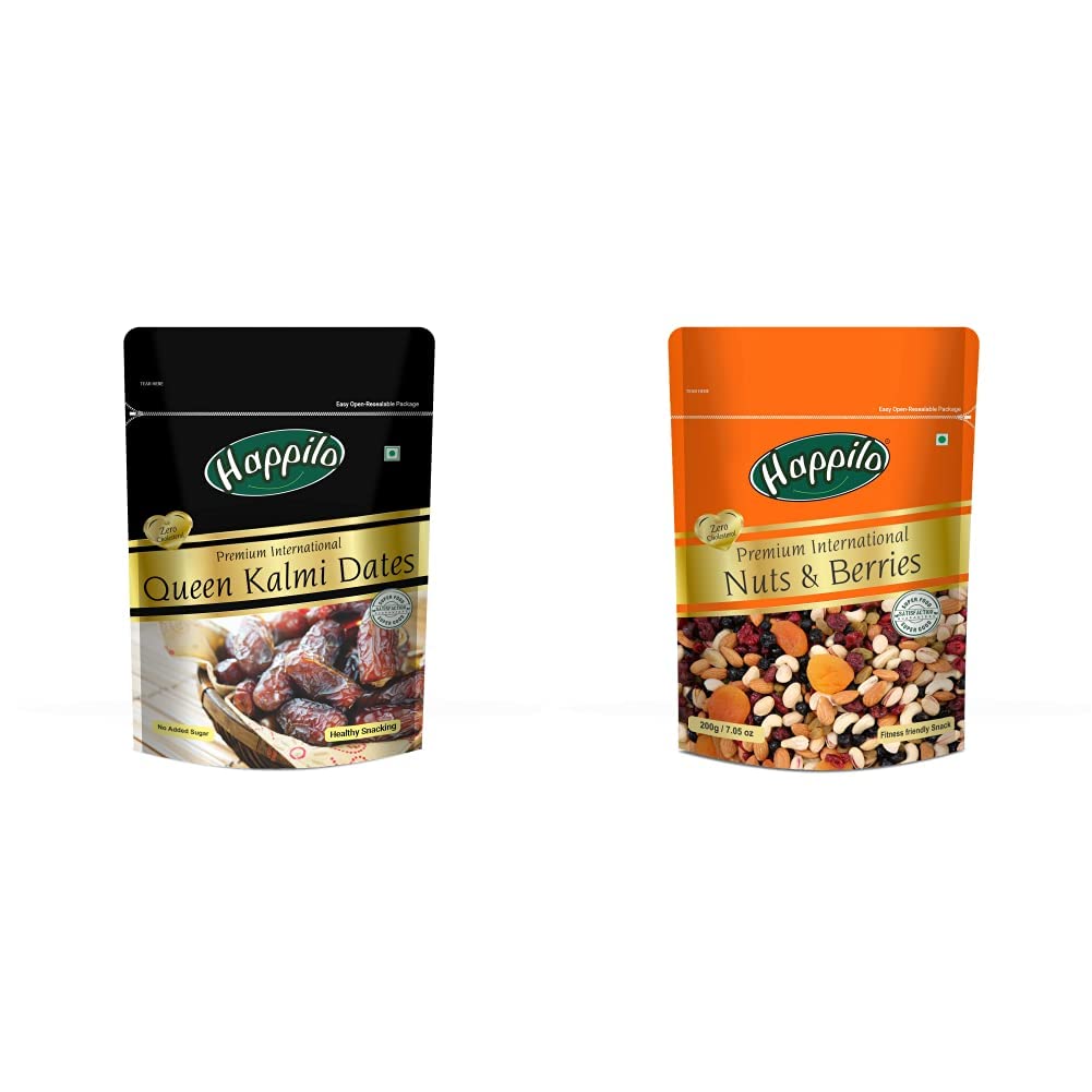 Happilo Premium International Queen Kalmi Dates, 200g + Happilo Premium International Nuts and Berries, 200g