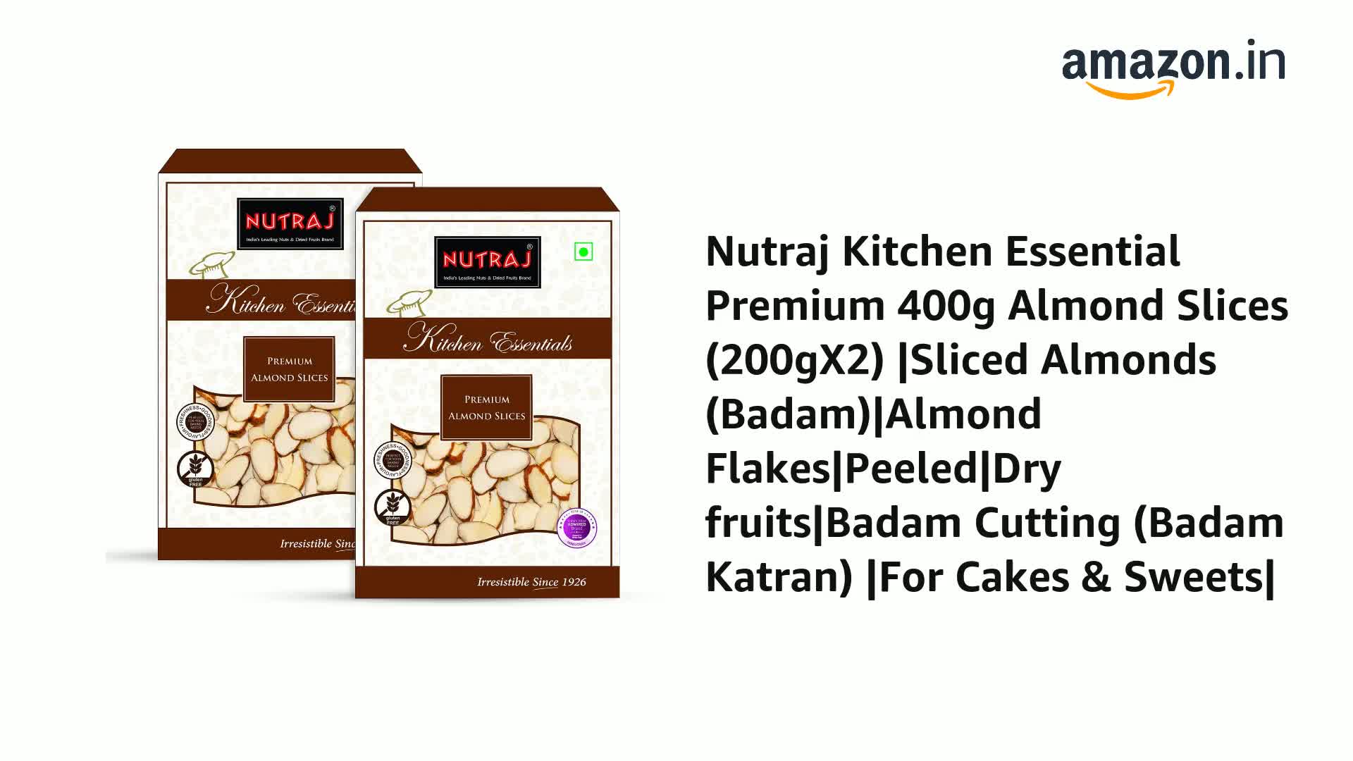 Nutraj Kitchen Essential Premium Almond Slices 400g (2 x 200g) | Sliced Almonds (Badam) | Almond Flakes | Dry fruits | Badam Cutting (Badam Katran) | For Cakes & Sweets|