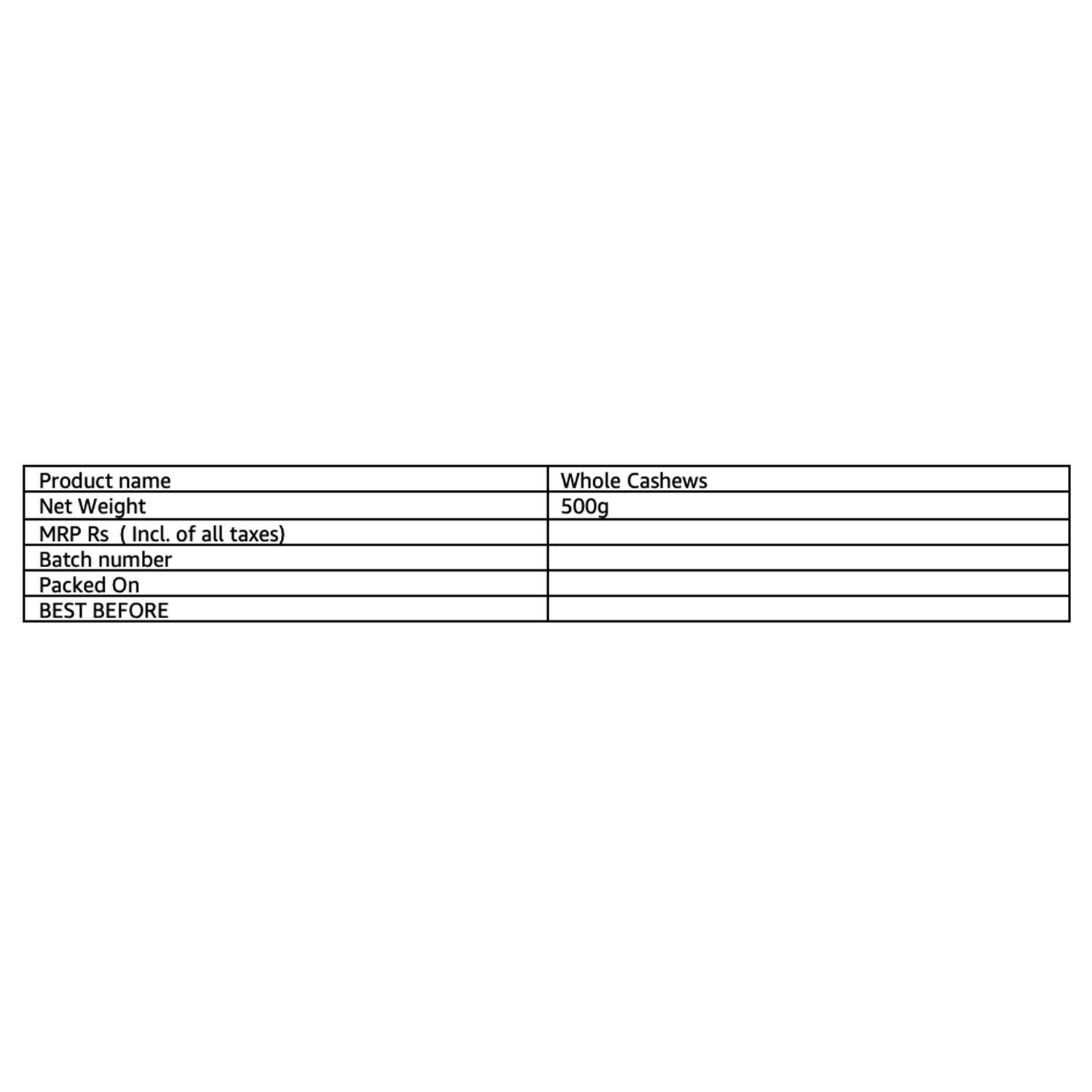 Amazon Brand - Vedaka Whole Cashews | 500 Gram | Kaju Nuts Grade W320 | Plant Based Protein | Gluten-Free | Nutty Flavor | Healthy Snack | Rich Delicious Taste