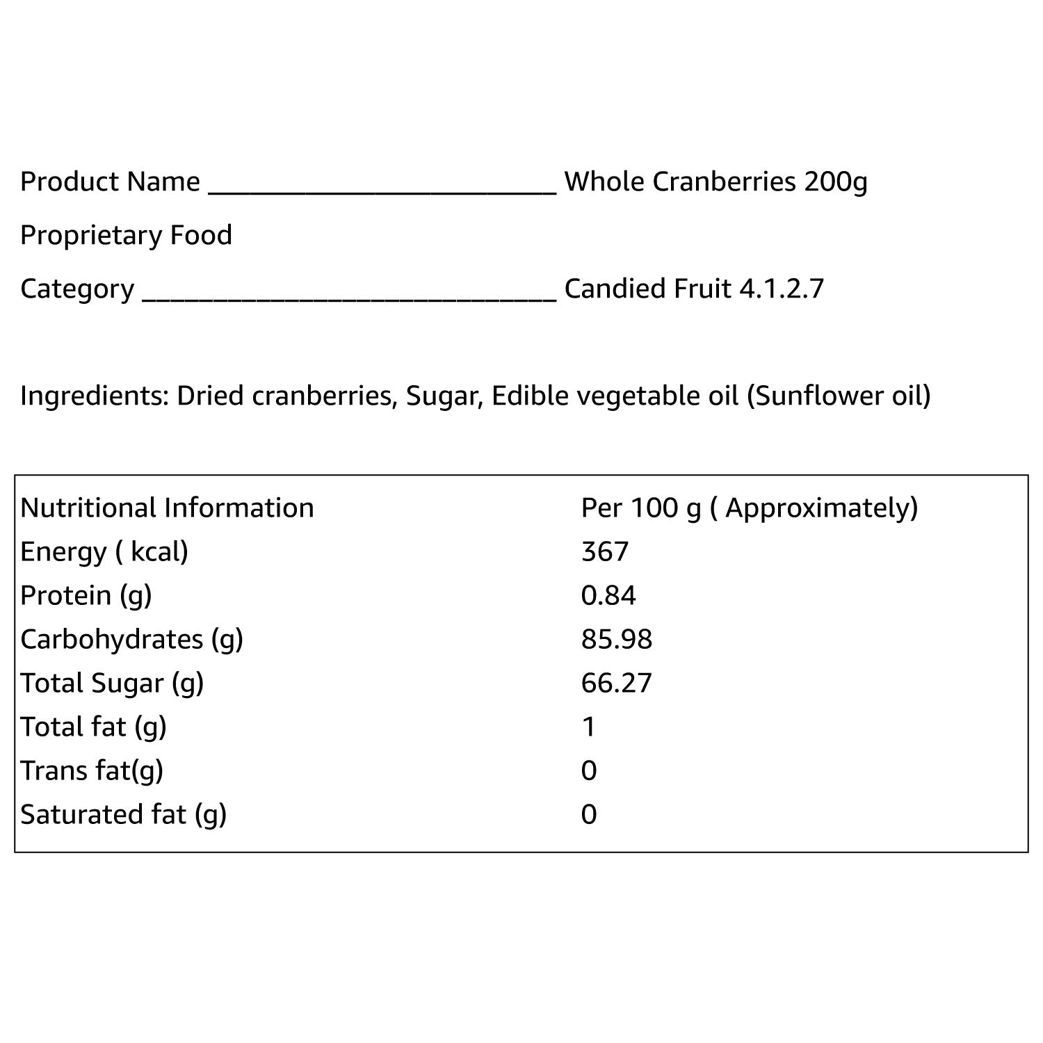 Amazon Brand - Vedaka Dried Sweetened Cranberries | 200 Gram | Whole | Tasty Snack For Kids And Adults | Quality Berries