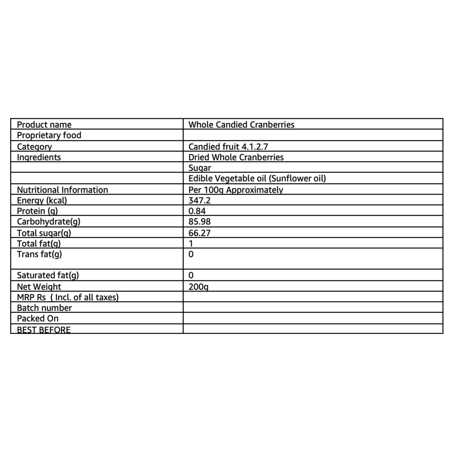 • Vedaka premium whole candied cranare hygienically packed at a certified manufacturing unit