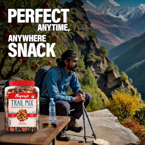HomeGroceryNutsMixed Dried FruitsBagrrys Trail Mix 1 Kg, Superfood Health Delight| Premium Nuts, Seeds & Berries Mix – California Almonds, Cashews, Black Raisins, American Cranberries, Midde Eastern Dates, Pumpkin Seeds, Green Raisins| Healthy Anytime Snack, High in Protein, Source of Fi