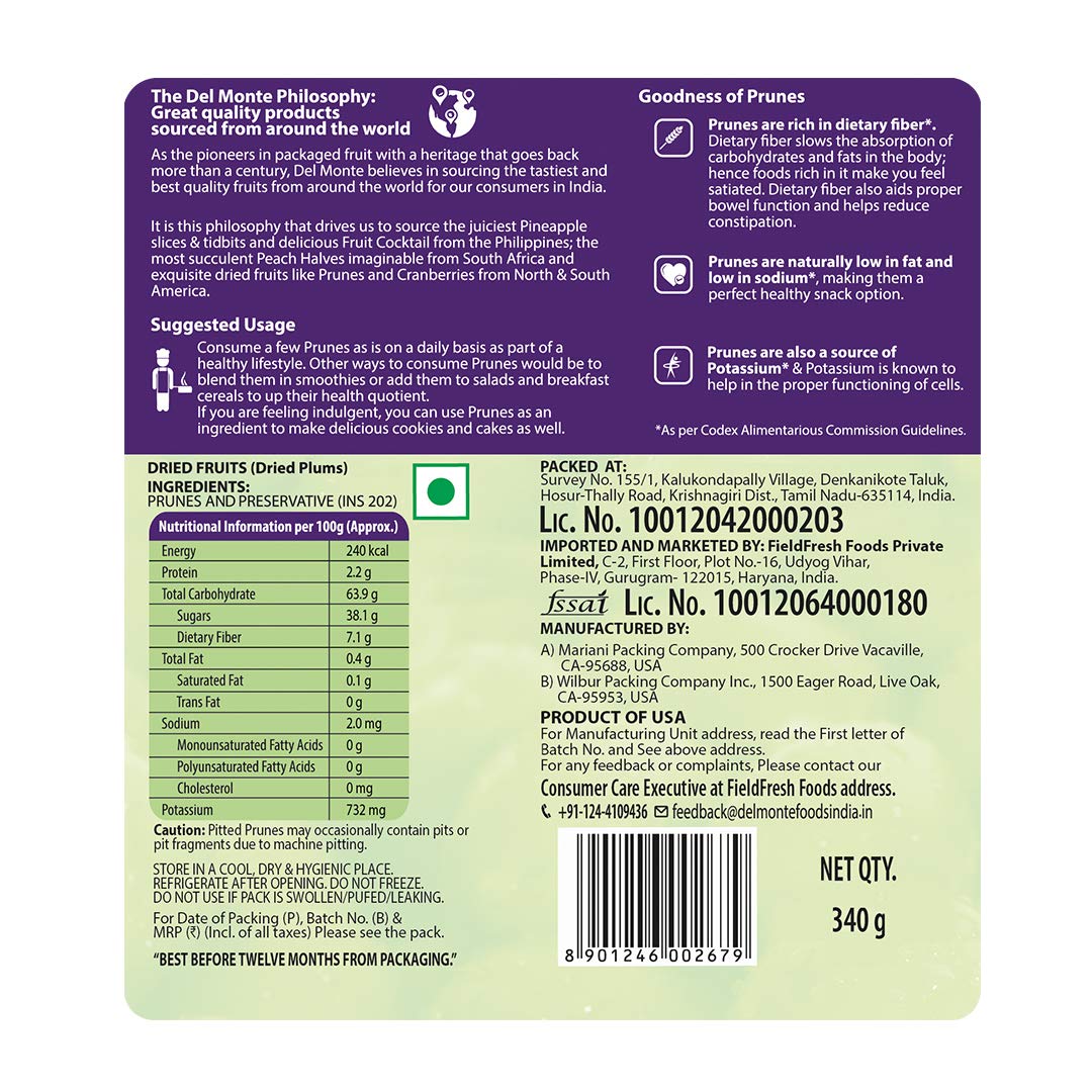 As pioneers in packaged fruits with a heritage that goes back more than a century Del Monte believes in sourcing the tastiest and best quality fruits from around the world for our consumers in India. It is this philosophy that drives us to source the juiciest Pineapple Slices and Tidbits from Philippines; the most succulent Peach Halves imaginable from South Africa and exquisite Prunes and Cranberries from North and South America. Del Monte Prunes are highly beneficial if consumed everyday as they are rich in dietary fibre a source of potassium and naturally low in sodium and fat.