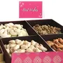 Opt for the Elegant Diwali gift boxes curated carefully to express your love and care towards your loved ones. This combo consists a collection of Premium Dry Fruits Assorted Gift Pack - 400g (Cashews WL320 Medium Raisins Grade A Almonds Roasted Salted Pista Medium - 100g each) and a greeting card. Procured and packed fresh these dry fruits are crunchy and tasty. A perfect gift enjoyable by everyone. Our Premium gift box will out class all the cliched sweets & chocolates from the mainstream brands in terms of freshness taste and quality. Make this Diwali special and memorable choose the best gift for your family and friends.