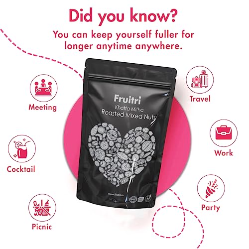 Fruitri Premium Khatta Meetha Roasted Mixed Nuts Trial Mix 1kg- Almonds Cashews Sunflower Seeds Pumpkin Seed Flax Seeds Cranberry Black Raisin Cherry (Khatta Mitha)