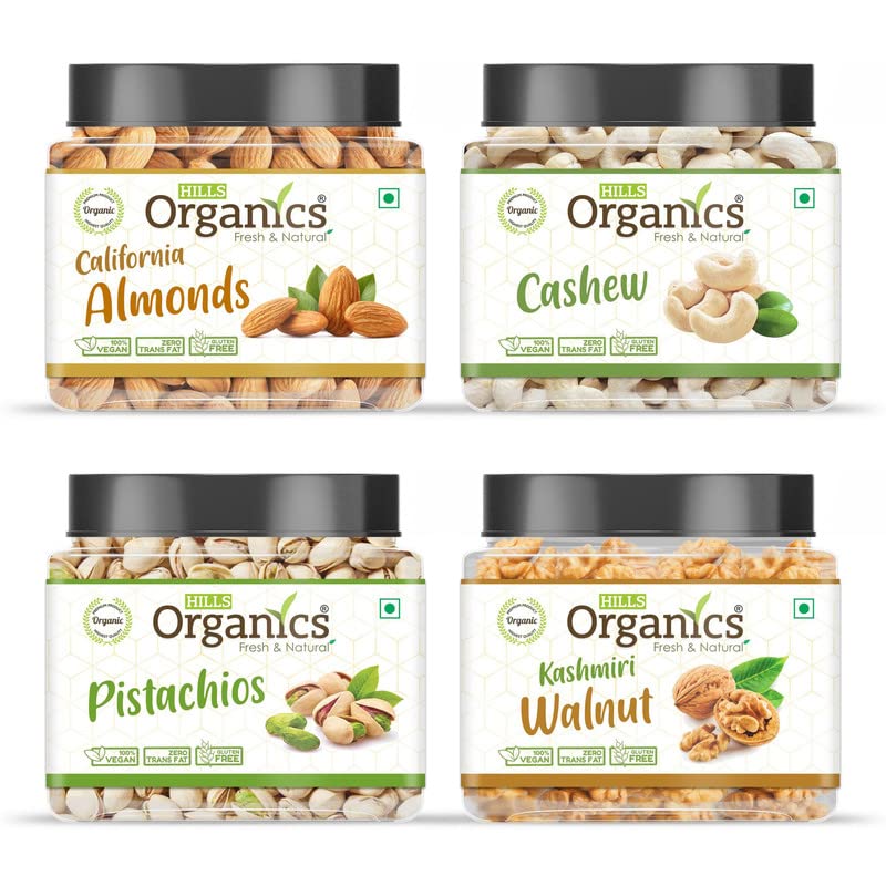 HILLS ORGANICS Dry Fruit Combo Pack - 400G | Kashmiri WalnutsAlmond CashewPistachios - 100G Each