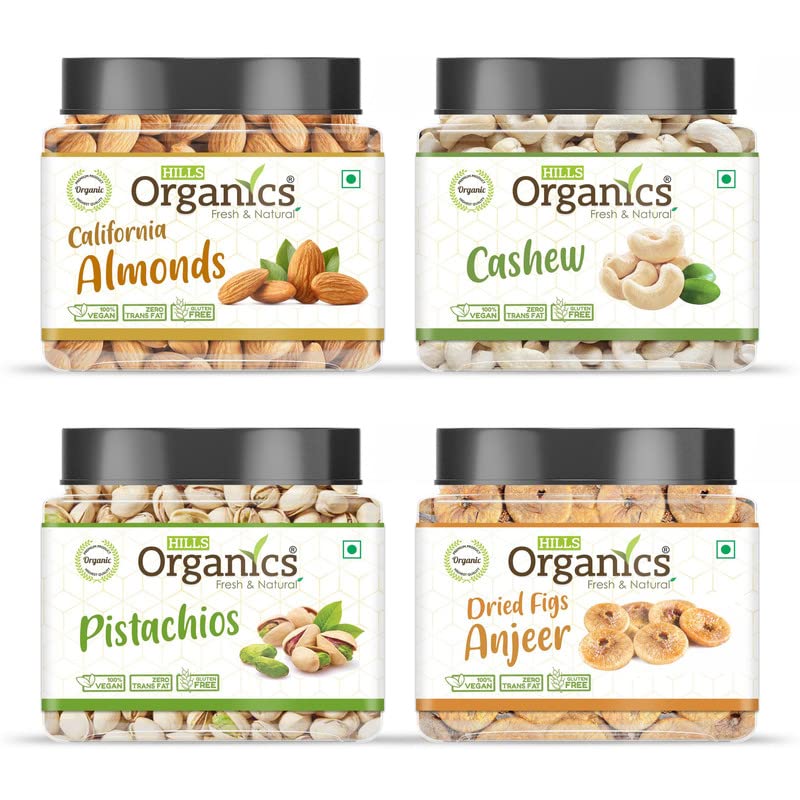 HILLS ORGANICS Dry Fruits Combo Pack - 400G | Almond CashewPistachios Dried Figs Anjeer - 100G Each
