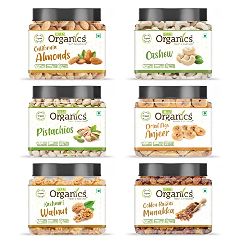 HILLS ORGANICS Dry Fruits Combo Pack - 600G | Almonds Cashew PistachiosDried Figs Anjeer Kashmiri Walnuts Golden Raisin( 100G Each ) Nutritious & Delicious Dry Fruits | 100% Natural | Real Nuts | Gluten Free | Hygienically Packed | Healthy Snacks for Adul