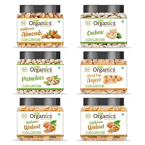 HILLS ORGANICS Dry Fruits Combo Pack - 600G | AlmondsCashew PistachiosDried Figs Anjeer Kashmiri Walnuts California Walnuts - 100G Each