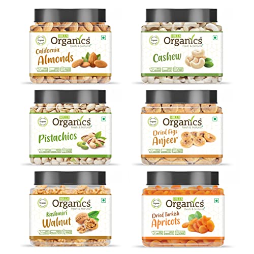 HILLS ORGANICS Dry fruits like Almonds Cashews Pistachios walnuts and Raisins Dates and Apricots are traditionally known to be the powerhouse of nutrients. Get the daily nutrient needs to be fulfilled with a Mixed Dry Fruits combo pack at a single place HILLS ORGANICS brand provides different kinds of Dry Fruits Combo Packs Which are hygienically packed - ALMONDS - They lower LDL (bad) cholesterol and are packed with vitamin E magnesium and potassium which helps oxygen and nutrients flow more freely through the blood. CASHEW -Cashew nuts are rich in healthy unsaturated fats and minerals like magnesium potassium and L-arginine. PISACHIOS - Pistachios are not only a good source of garnishing sweets but also makeup up one of the healthiest foods. They are nutrition pack powerhouses loaded with antioxidants. Pistachio contains a high amount of dietary fiber that can strengthen your digestive tract. Pistachios are rich in dietary fibers and proteins that may promote satiety and in turn help in weight loss. RAISINS - kishmish is rich in fiber and kishmish is good at controlling cholesterol levels. This in turn helps prevent heart disease. due to its fair amount of calcium magnesium and phosphorus. ANJEER - regular intake of anjeer can lower the triglyceride level in the blood which is useful for maintaining a good heart. Anjeer can also help reduce the chances of obesity. WALNUTS - There have multiple studies that prove the benefits of walnuts for brain functioning Super Plant Source of Omega-3s helps with the increased absorption of calcium in the body. APRICIT-Eat some Dried Apricots at least once in a day to stock up Vitamin K in your Body. DATES -Dates are the fruit of Date Palm tree. They are chewy with a sweet flavor. Dates are extremely nutritious and contain several vitamins and minerals in addition to fibre and antioxidants.