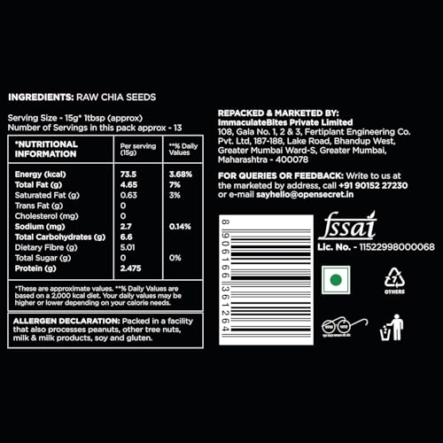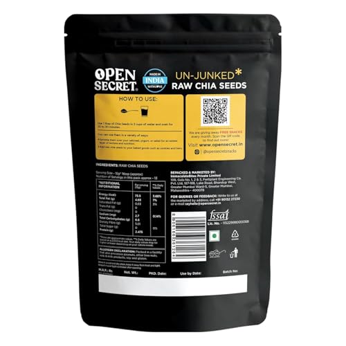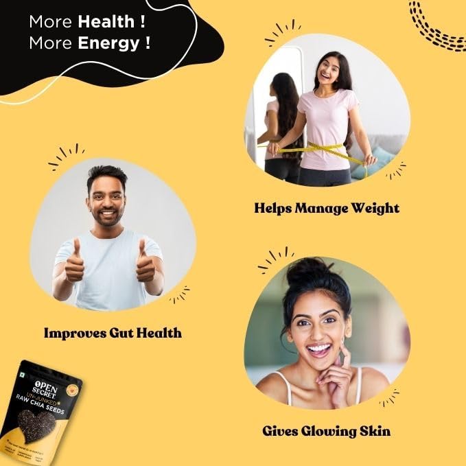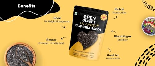 HomeGroceryNutsMixed Dried FruitsOpen Secret Premium Chia Seeds | 200g | Raw Handpicked Chia Seed for Eating, Healthy Snacks, Rich in Protein & Fiber with Omega - 3 & Antioxidants, Un-Junked Power Pack (Pack of 1)