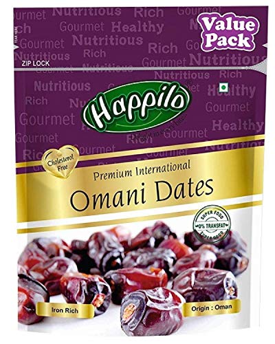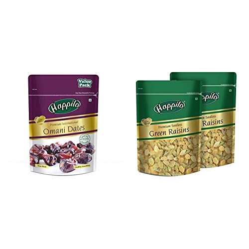 Premium International Omani Dates Value Pack Pouch 680 gomani dates also known as khajoor are one of worlds most delicious farm fresh dates. Omani dates have the hidden quality of boosting energy instantly! Hence they are not just apt during festive season but are also a must-have snack for the entire year. It is superfood for super energy levels. Our products are packed under highest level of hygiene retaining all the goodness of nature.Premium Seedless Raisins 250g (Pack of 2)has travelled the world to get the finest gourmet dry fruits dried fruits nuts berries and dates 100 percent natural and authentic. Indulge into the gourmet and grocery world of Happily with awesome natural nuts and dry fruits along with the unique dry fruit mixes fusions and flavoured dry fruits healthy seeds and dried berries specially crafted for your taste and health. Happily dry fruit gift boxes and festive dry fruits and nuts gift pack brings health happiness and love to gift to your colleagues friends and family. We bring you the taste and health together in single pack in the finest of packing packed in an art of the state facility certified by all majors like fssai iso. Every Happily pack is a perfect dry fruits gift for every festive occasion.