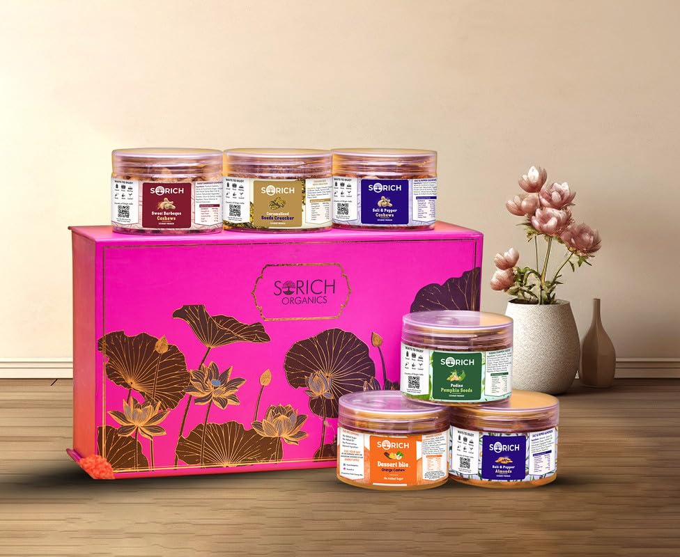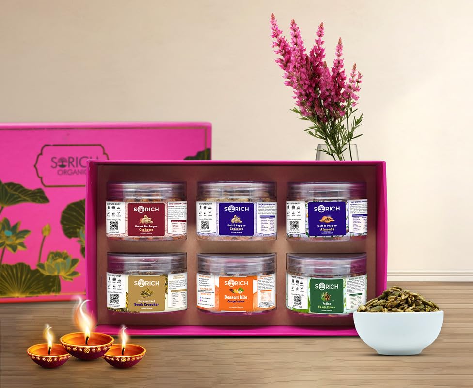 Sorich Organics Treat Diwali Gift Hamper | Diwali Gift Hamper with Festive Card | Diwali Gift Hampers | Roasted Dry Fruits and Snacks Diwali Gift Box | Premium Diwali Gift Hamper | Wholesome Corporate Gifting | Diwali Gift Hamper for Gifting