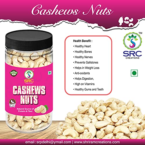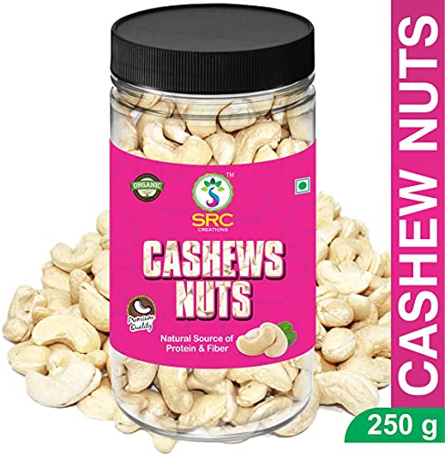 SRC CREATIONS 100% Natural Premium Whole Cashew Nuts 250 g | Raw Kaju | Nutritious Crunchy & Delicious | Gluten Free | Plant-Based Protein