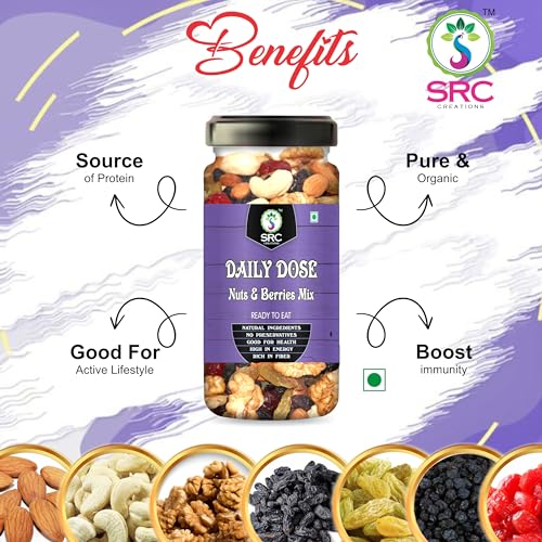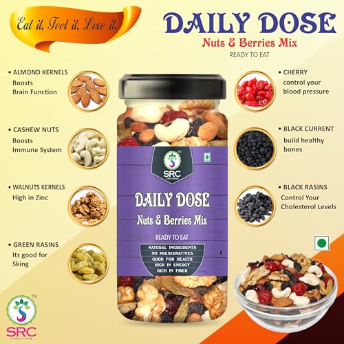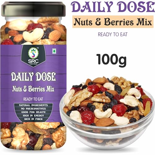 SRC CREATIONS Daily Dose100 gm Jar Pack Ready to eat | Breakfast Food (Daily dose Nuts & Berries Mix 100gm)