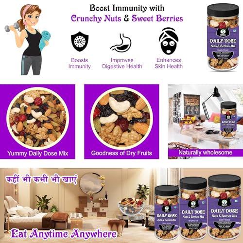 • This mix with nuts and dry fruits is helpful in gratifying your snack cravings while meeting your daily requirements of Protein and Fiber.You can enjoy this mix while binge-watching or while hiking too!