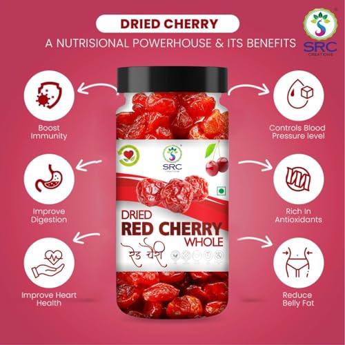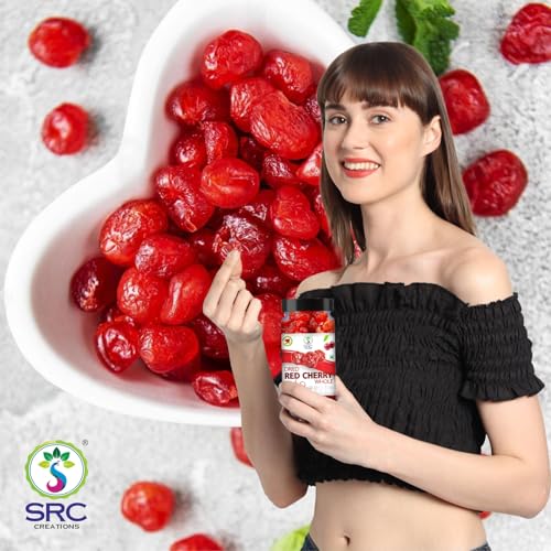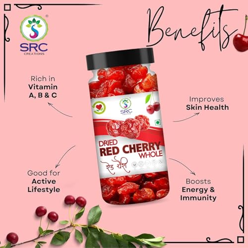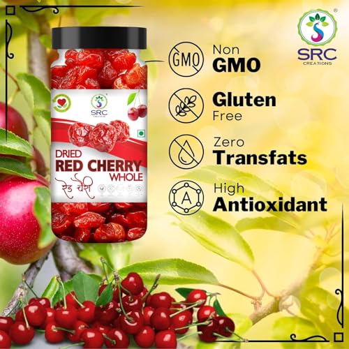 Enhance your snacking and cooking experience with SRC creation Dried Red Cherries Fruit naturally sweet and juicy offering a burst of flavor in every bite. These premium cherries are a rich source of essential nutrients and antioxidants making them a healthy choice for any time of the day. Perfect for baking they add a delightful touch to cakes pastries muffins and other desserts. You can also mix them with cereals trail mixes or yogurt for a wholesome treat. The cherries come in a convenient and resealable jar pack to ensure long-lasting freshness and easy storage.