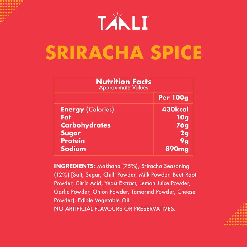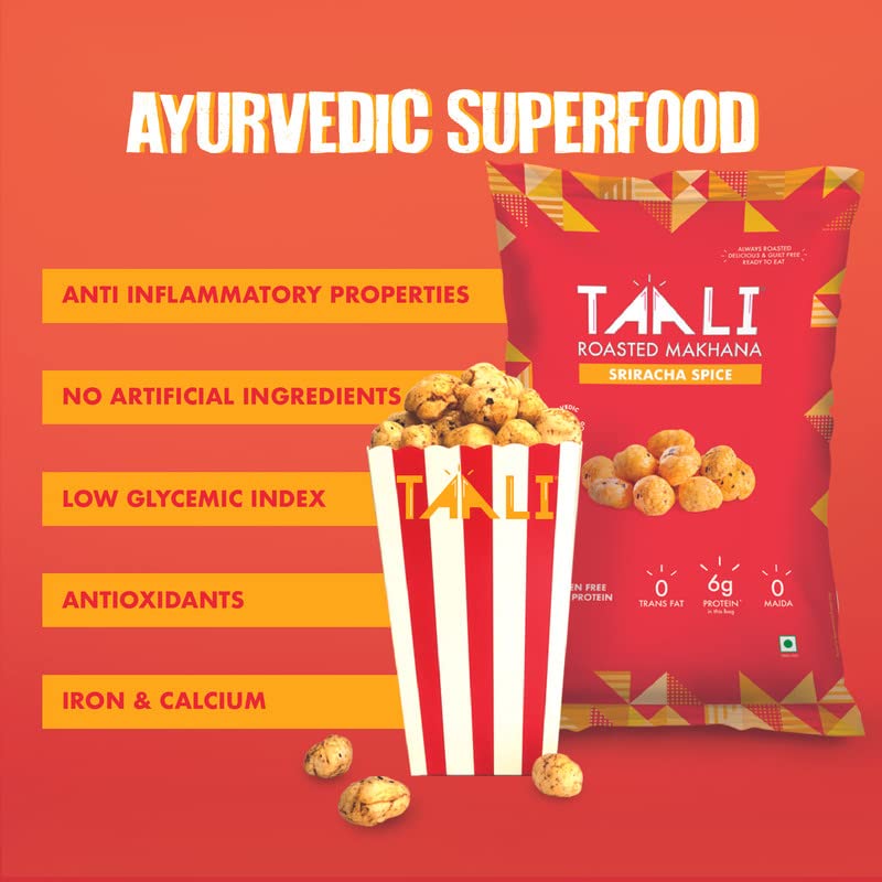 Taali Roasted Makhana | 60 gm (Pack of 3) | Sriracha Spice | 100% Vegatarian | Gluten Free No Cholesterol No Trans-Fat