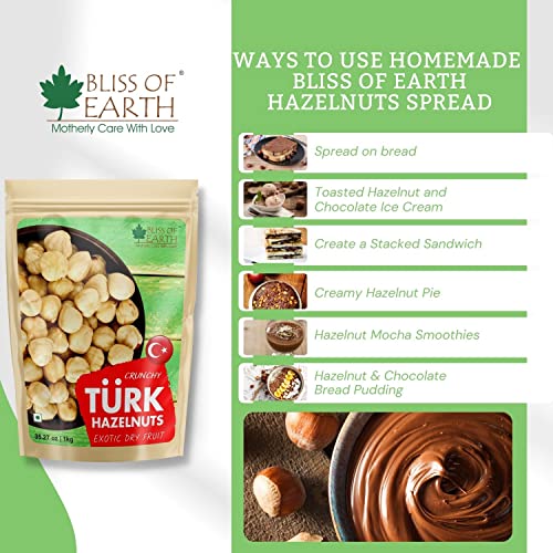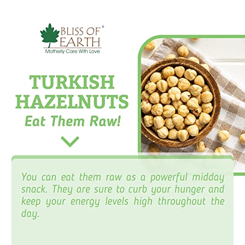 Bliss of Earth Turkish Hazelnuts are powder packed with nutrients including vitamins minerals anti-oxidants and healthy fats. Hazelnuts can be consumed as a raw snack roasted or added to baked dishes such as cake chocolates & shakes. All in all hazelnuts are an excellent and delicious source of nutrients for a healthy diet. Hazelnuts offers various health benefits including regulating blood pressure Direction for use: Consume raw roasted or salted. Add to your cake chocolates or shakes. Ingredients: Raw Dehulled Hazelnuts Country of Origin: Turkey