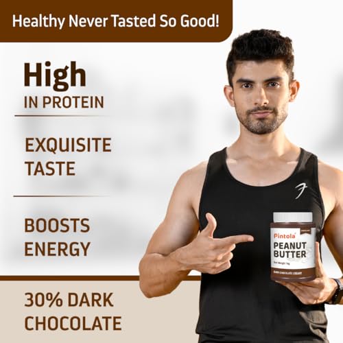 Pintola Peanut Butter Chocolate Flavour Crunchy 1kg - 18.6g Protein & 5.2g Dietary Fiber, Made with Premium Roasted Nuts & Cocoa, Gluten Free, Zero Cholesterol & Trans Fat, Vit E & B3, Dark Chocolate