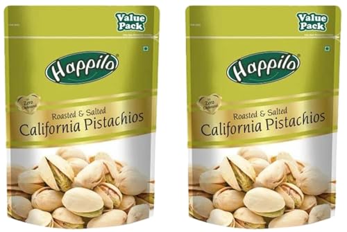 Happilo Premium Californian Roasted & Salted Pistachios 500 gms Value Pack | Pista Dry Fruit Shelled Nuts Super Crunchy & Delicious Healthy Snack | Vitamins & Minerals Rich (Pack of 2)