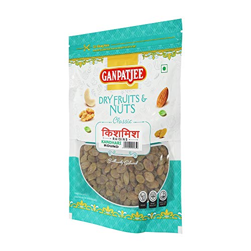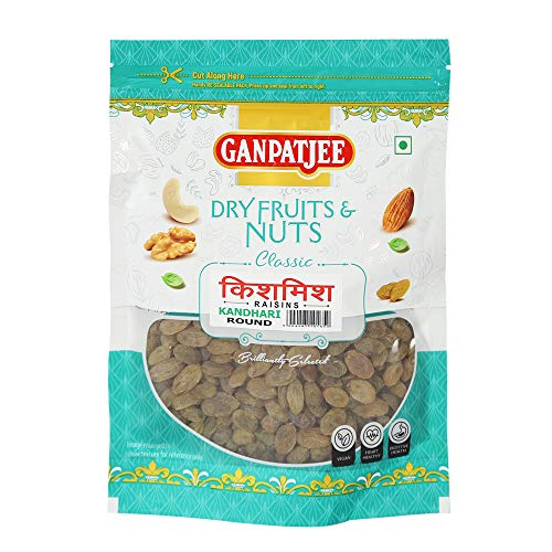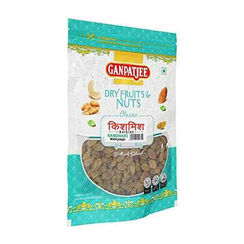 Ganpatjee Raisins ( Kishmish Kandhari Round ) are loaded with an array of nutrients like vitamins minerals and antioxidants. Kandhari Raisins is a versatile food. Add them to your yoghurt or cereals as a topping. Include them in your desserts baked goods etc. They are extremely delicious and have a popular variety of delightfulness added to them. They help to reduce cholesterol. These Kandhari raisins are relished by children and grownups alike. They are a suitable alternative to candies and chocolates because of their delicious sweet taste. It can be used in desserts cookies pies puddings as well as savoury dishes. Brings to you a range of nuts and raisins. Packaged to retain freshness taste and texture. All our dry fruits and nuts are hygienically packed in a facility meeting food safety standards. The quantity of the product is 250 grams.