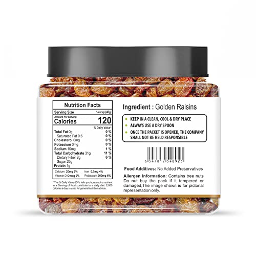 HILLS ORGANICS Golden Raisins (Munakka)- 250 grams | 100% Fresh & Natural Kishmish Dry Fruits | Amazing Quality Seedless Kismis | Nutritious Rich in Iron & Vitamin B - Jar Pack