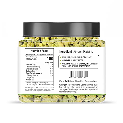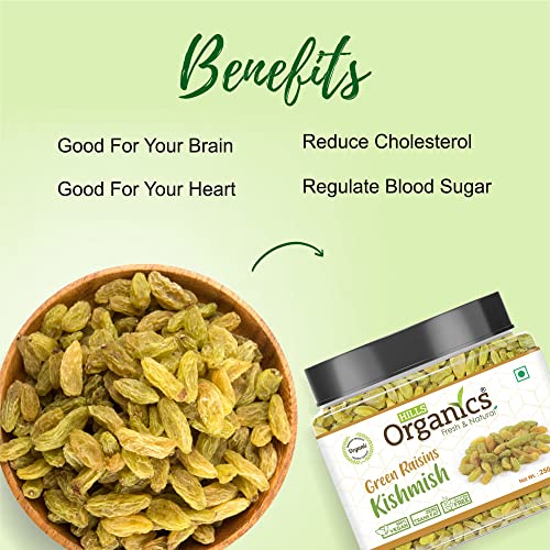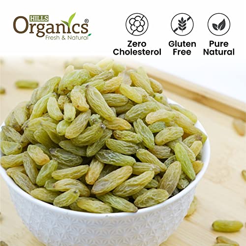 HILLS ORGANICS Green Raisins (Munakka)- 250 grams | 100% Fresh & Natural Kishmish Dry Fruits | Amazing Quality Seedless Kismis | Nutritious Rich in Iron & Vitamin B - Jar Pack