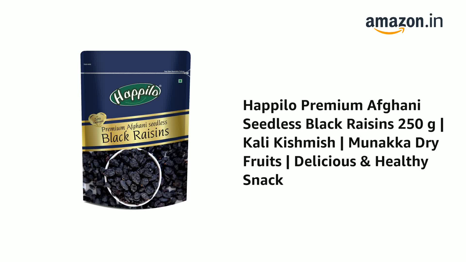 Happilo Premium Afghani Seedless Black Raisins, 250g