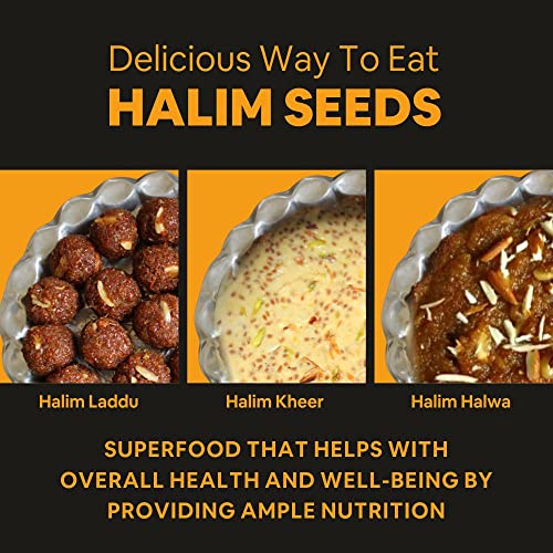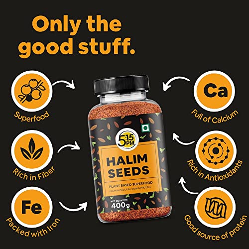 HIGH NUTRITION VALUE: Our 5:15PM Halim Seeds also known as Haleem or Aliv seeds or garden cress seeds are high in protein Vitamin A folate Vitamin C Calcium and Iron.