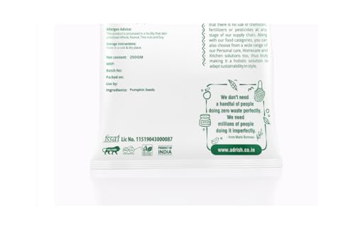 Adrish Zerowaste Organic Pumpkin Seeds (250gm) - Raw Pumpkin Seeds | High in Protein & Fiber | Immunity Booster Diet Food | Premium Pumpkin Seeds | Seeds for Eating