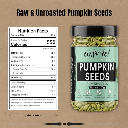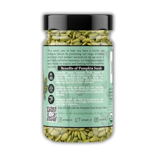 Amwel Organic Pumpkin Seeds 200g | Raw Unroasted edible seed for weight management and hair regrowth | Diet Food eating Snack