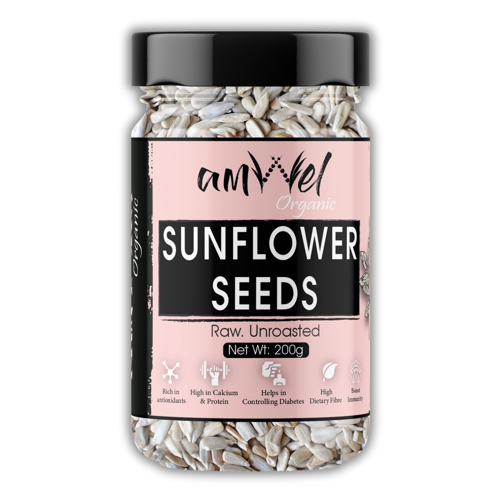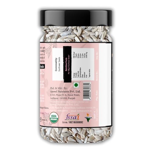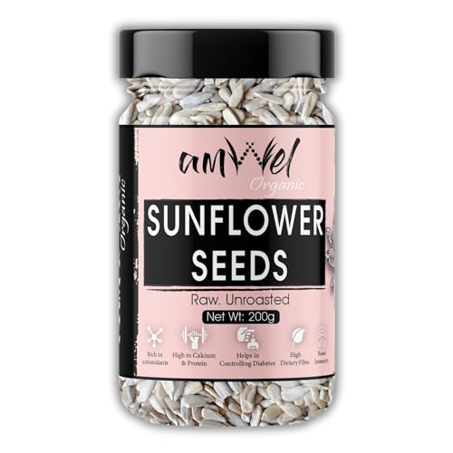 Amwel Organic Sunflower Seeds 200gm | Raw Unroasted edible seed for weight loss | Gluten Free Omega 3 High fibre Keto diet snack for eating | USDA Certified grains