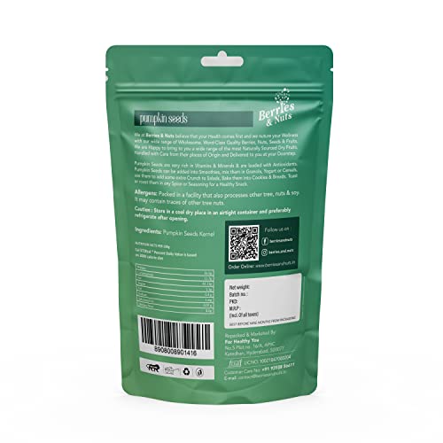 Berries & Nuts Premium Pumpkin Seeds - 600 Grams Healthy, Crunchy, Nutritious | Raw Pumpkin Seeds | 3 Pack of 200 Grams