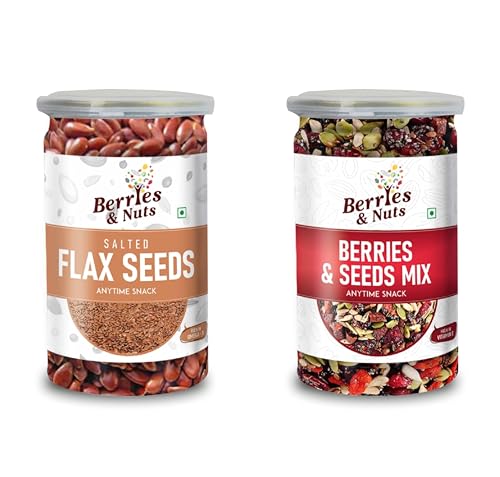 Berries And Nuts Premium Salted Flax seeds 150 Grams & Berries & Seeds Mix 200 Grams Combo | 450 Grams