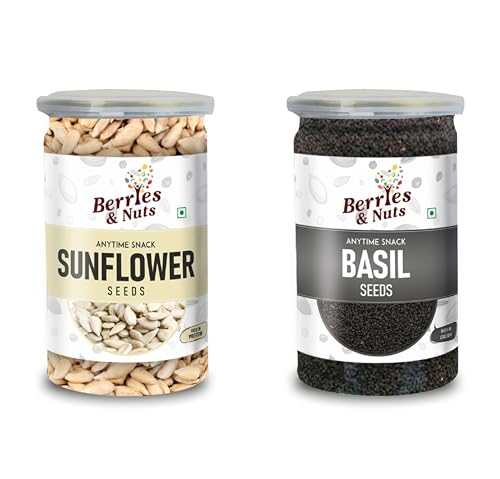 Berries And Nuts Premium Sunflower Seeds & Basil Seeds Combo | Sunflower 200 Grams and Basil 200 Grams | 400 Grams