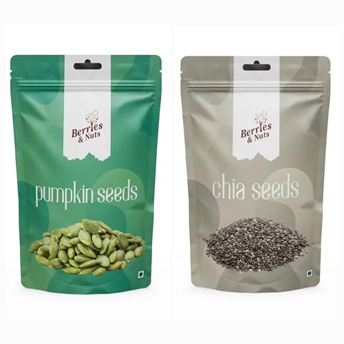 Berries And Nuts Pumpkin seeds & Chia Seeds Combo| Pumpkin Seeds 200 Grams Pouch and Chia Seeds 200 Grams Pouch | 400 Grams