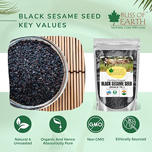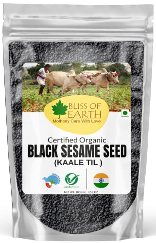 Bliss of Earth 100gm unhulled Black Sesame Seeds, Kaale Til, Fresh & Organic Fully Fiber Rich Great for Cooking & Baking