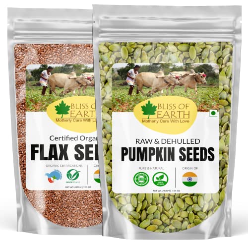 Bliss of Earth 200gm Organic Raw Flax Seeds + Pumpkin Seeds dehulled Organic Naturally for Eating and weight Loss rich Omega Combo (Pack of 2)