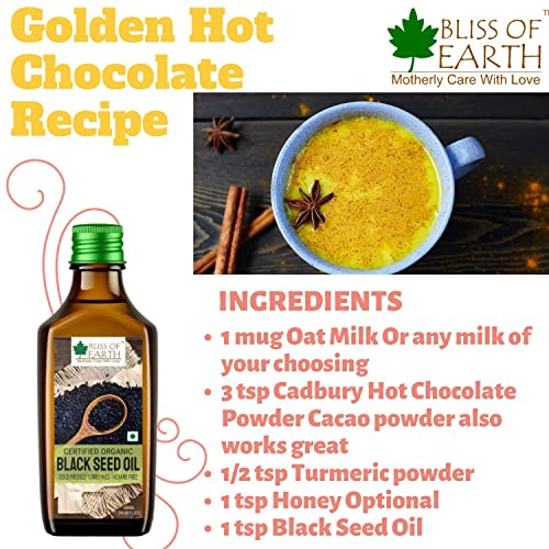 • 100% ORGANIC COLD PRESSED: Bliss of Earth Black Seed Oil (Black Cumin) is freshly cold-pressed (virgin-first-pressing) using only the highest quality NON-GMO and organically sourced Nigella Sativa seeds and is Guaranteed 100% Pure Solvent-Free and Non-Ref