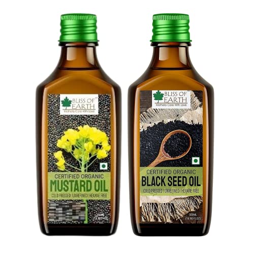 Bliss of Earth 500ML Certified Organic Mustard Oil+500ml Organic Kalonji Oil For Eating, Black Seed Oil For Hair, Cold pressed & Hexane Free(pet bottle)