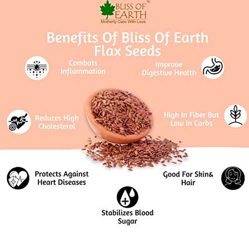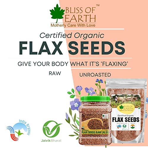 Bliss of Earth Organic Flax Seeds, 600g Pack, Raw Whole Flaxseed for Cooking and Baking, High in Omega-3 Fatty Acids, Gluten-Free, Non-GMO, Rich Source of Fiber and Protein, Superfood for Health