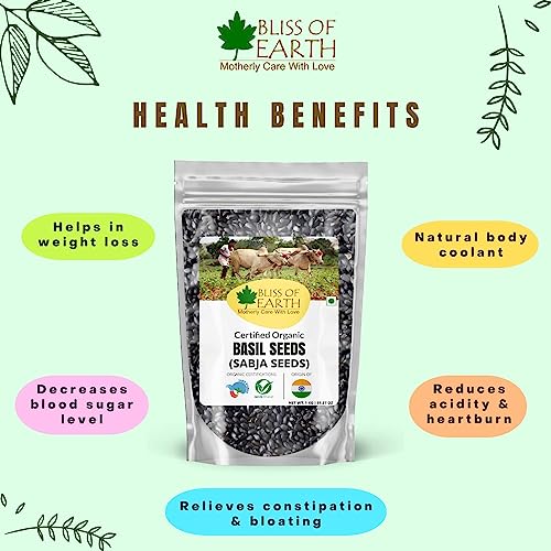 Bliss of Earth Certifed Organic Basil Seeds (Sabja) are used to add a unique flavor in food and beverages. basil seeds is a natural source of protien high in fiber a good source of minerals rich in plant base omega-3 fat & carbs. Preferably it can be eaten after soaking them in water for few minutes with many dishes.